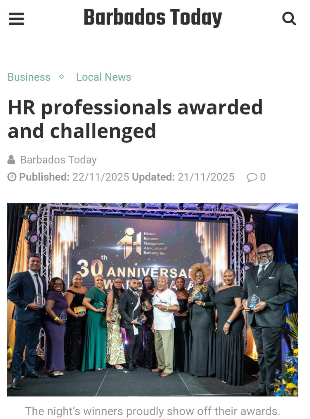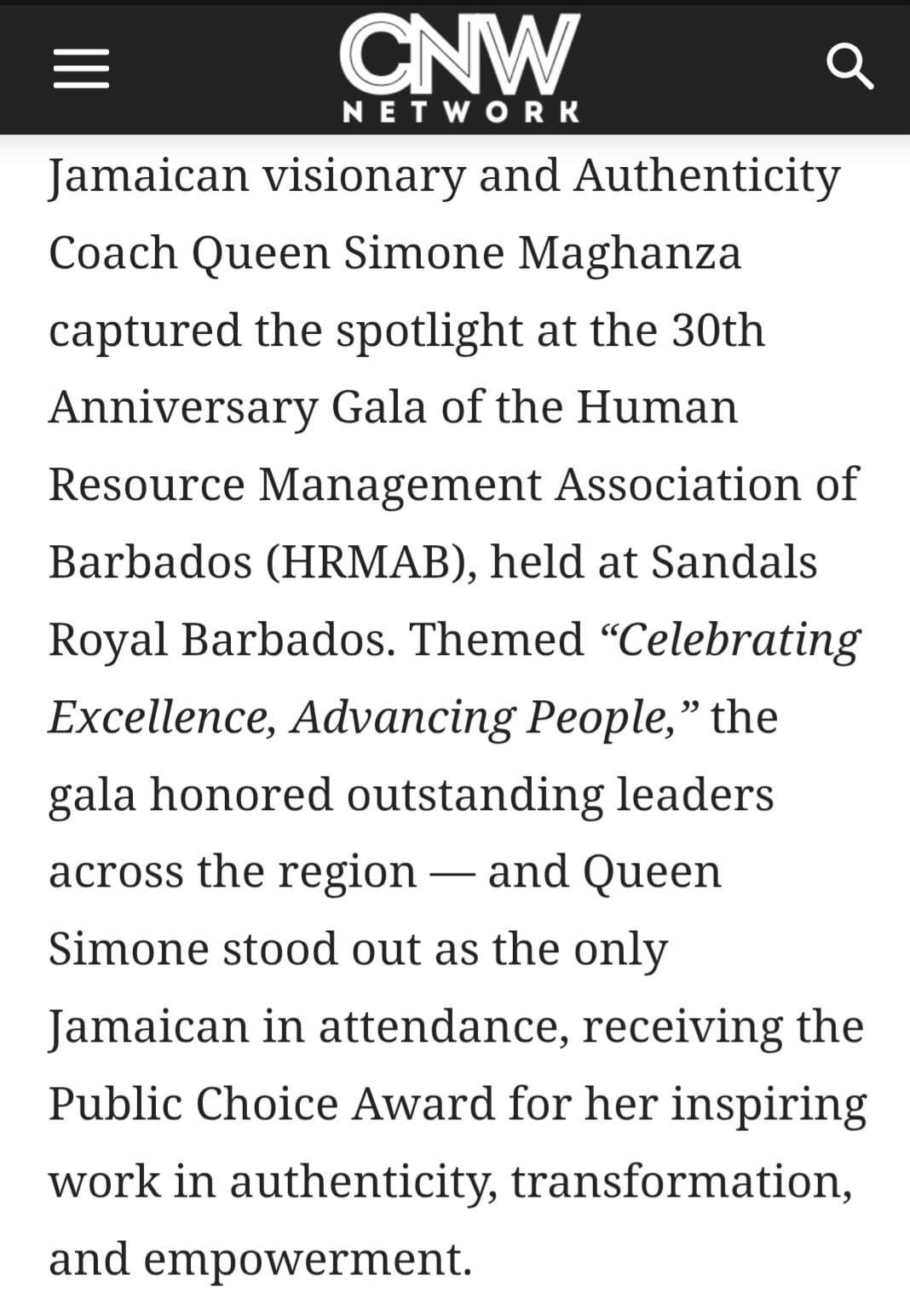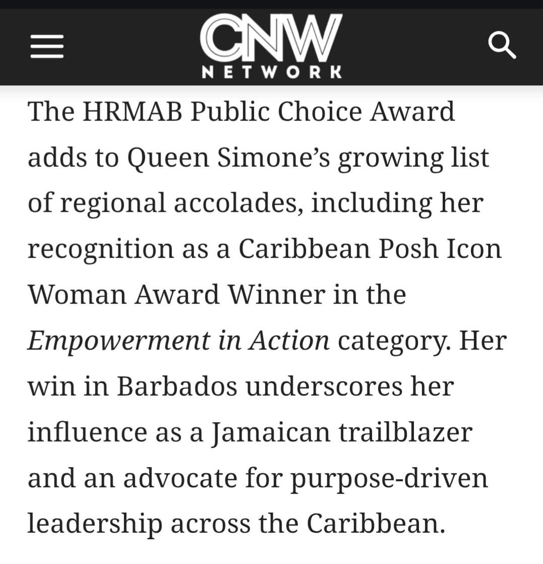 Queen Simone Recognized with the Public Choice Awards 2025 from The Human Resource Management Association of Barbados