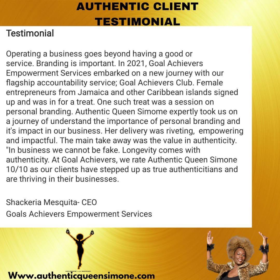 Order Now.Tired of shrinking, mask wearing, hiding and performing? this is your spiritual wakeup call. Give birth to yuh Authenticity is a soul- calling, memoir, self awakening book. Through lived experiences, hard-earned lessons and soul-stirring exercises Queen Simone helps readers to break free from Conditioning, perfectionism, people pleasing and victim mentality. This is not just a book to read , it's a movement to experience. With its transformational ,story-driven style and Queen Simone’s Authentic Jamaican voice , create a hybrid that is both empowering and practical.Review: